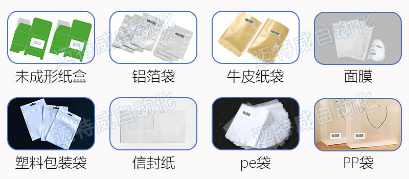 该设备适用于适用于纸张、铝箔袋、纸袋、商标卡、合格证等平面片状物体表面的自动打印和贴标。可在空白标或预留标上在线打印生产日期批号、序列号、条形码、二维码、品名、专销区等预设内容并完成同步贴标。